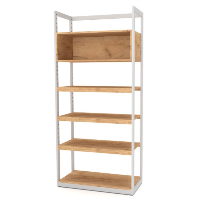 Έπιπλο Τοίχου "PROMO" με άνω ξύλινο κύβο για τοποθέτηση των προϊόντων που χρειάζονται ξεχωριστή προβολή.