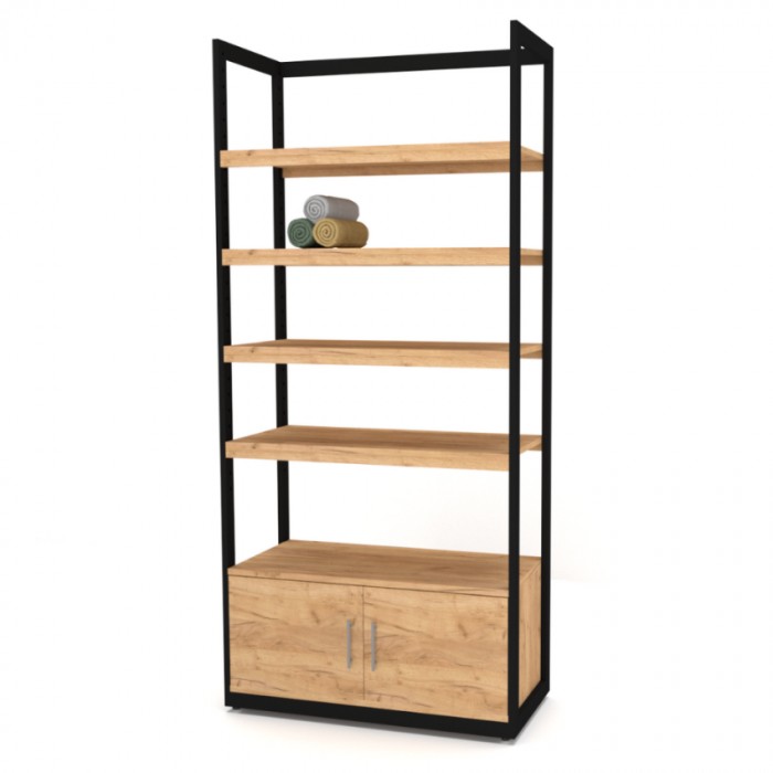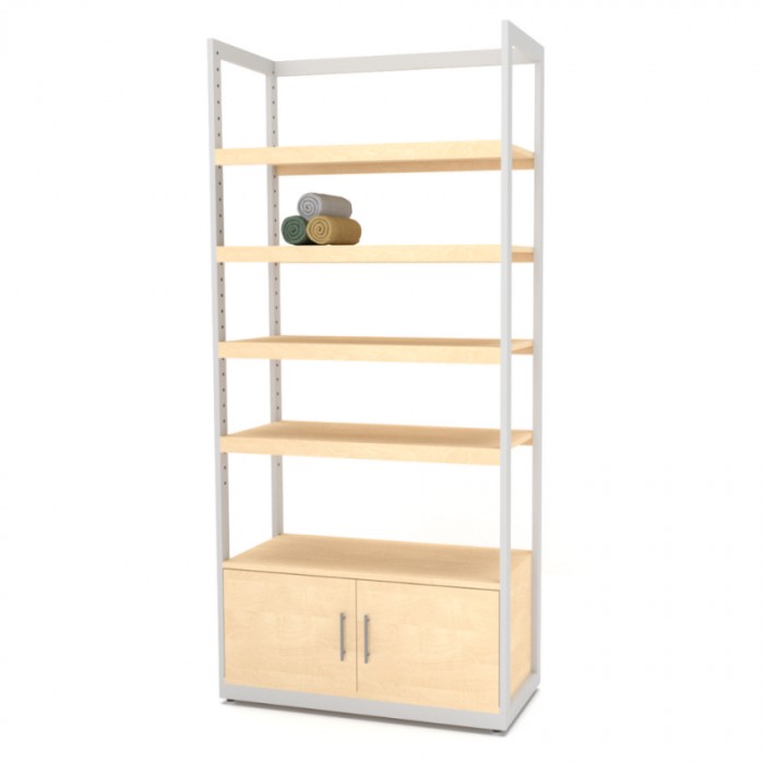 Ψηλή ραφιέρα με ντουλάπι στο κάτω μέρος και τέσσερα (4) ενισχυμένα ράφια.