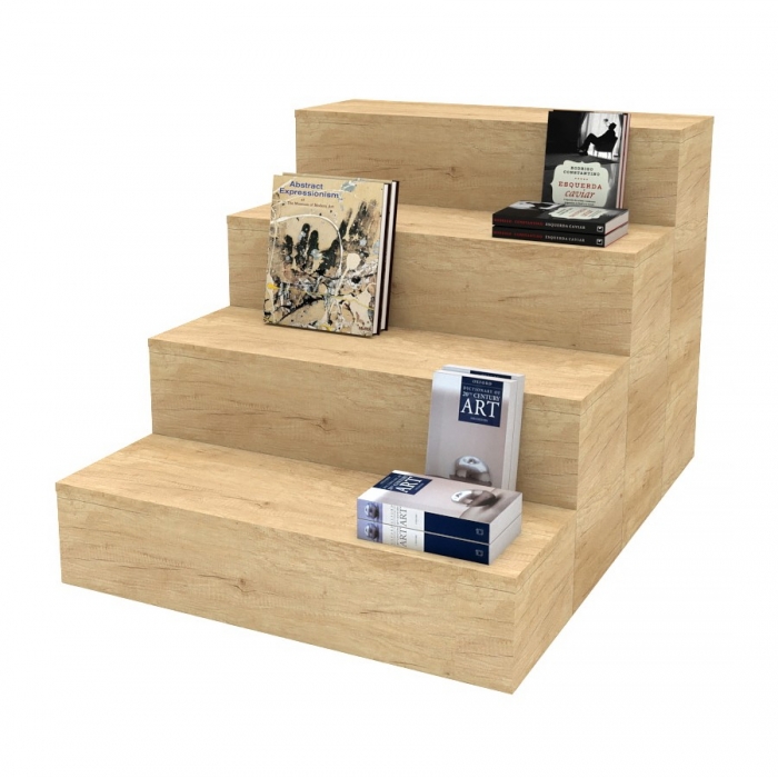Βάθρο για τη Βιτρίνα του Βιβλιοπωλείου με τέσσερα (4) επίπεδα προβολής σε σχέδιο σκαλιέρας.