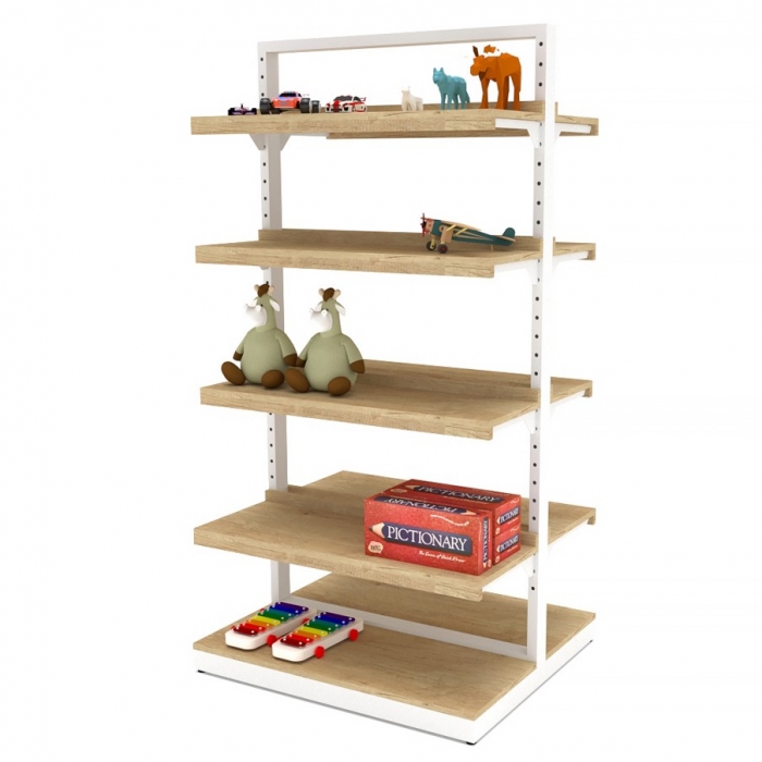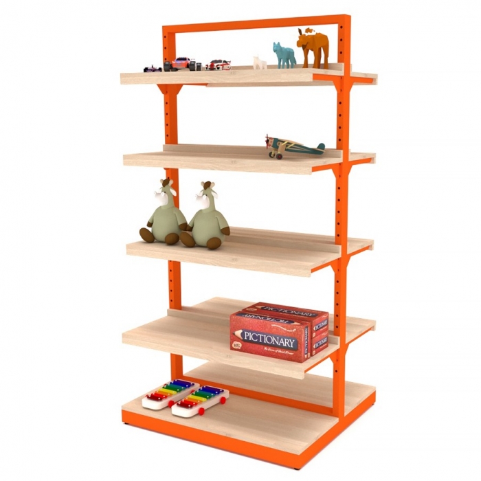 Γόνδολα με Μεταλλικό Σκελετό και διατρήσεις σε δύο (2) όψεις χωρίς πλάτη ενδιάμεσα. Διαθέτει οκτώ (8) ράφια μελαμίνης με τους αντίστοιχους βραχίονες στήριξης.