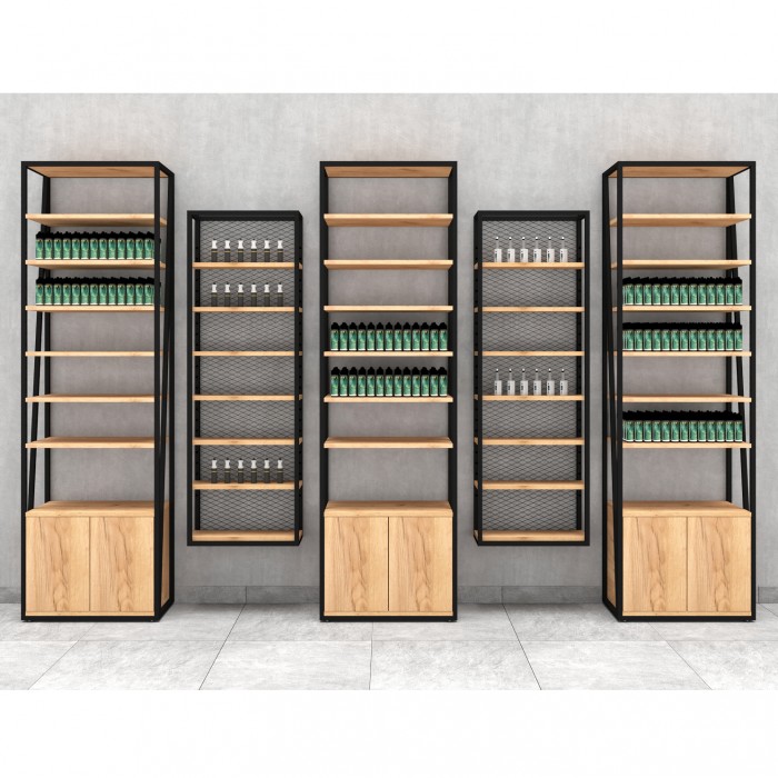 Αποτελείται από πέντε (5) ανεξάρτητα έπιπλα που συνδυάζουν το μέταλλο με το ξύλο ενώ ταυτόχρονα παρέχουν τη μέγιστη ευελιξία με ρύθμιση ραφιών ανά 5cm καθ' ύψος.