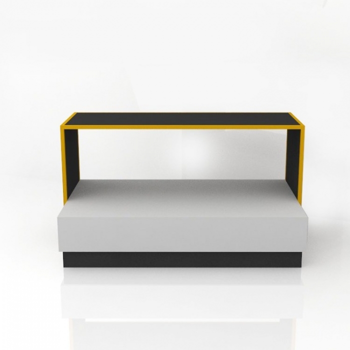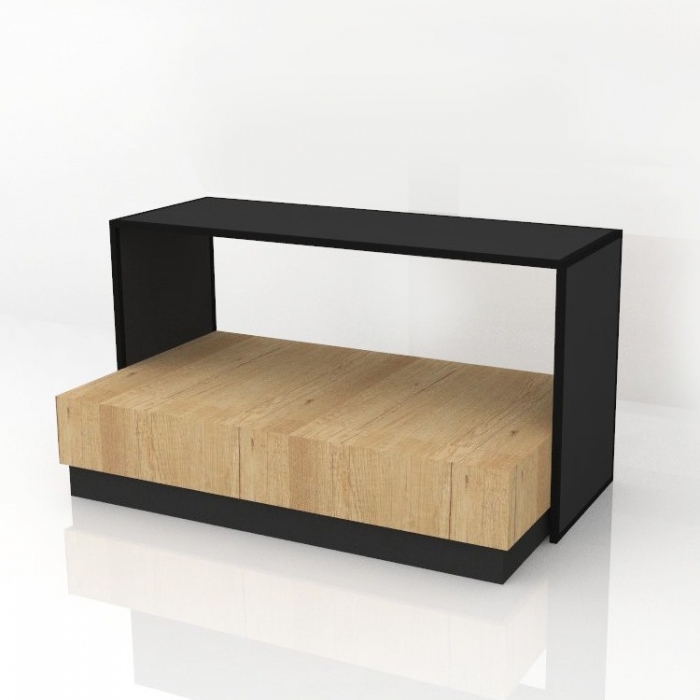 Τραπέζι Προβολής Προϊόντων που αποτελείται από βάθρο και μεταλλικό τραπέζι "Π" με καπάκια μελαμίνης. Ιδανικό για καταστήματα ένδυσης, τουριστικά μαγαζιά και όχι μόνο!