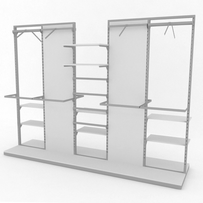 Αυτοστήρικτη μονάδα για το κέντρο του καταστήματος με πολύ μεγάλη χωρητικότητα προϊόντων και δυνατότητες προβολής σε μπάρες κρέμασης και ράφια.